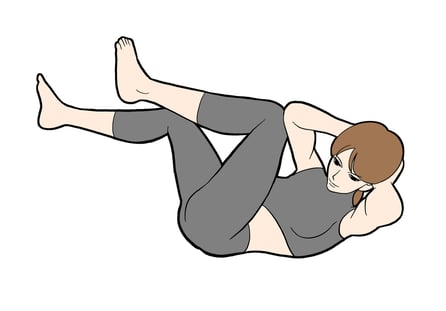 5..おへそをのぞき込むように上体を丸めることがポイントです。